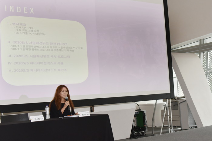 이날 기자간담회는 이번 시즌부터 새롭게 부임한 전미경 서울패션위크 총감독이 처음으로 공식석상에 모습을 드러냈다. 서울패션위크의 새로운 수장이 된 총감독의 입을 통해 2020 S/S 서울패션위크의 운영 및 변화된 주요 프로그램에 대해 전반적으로 설명하는 시간이 마련됐다.