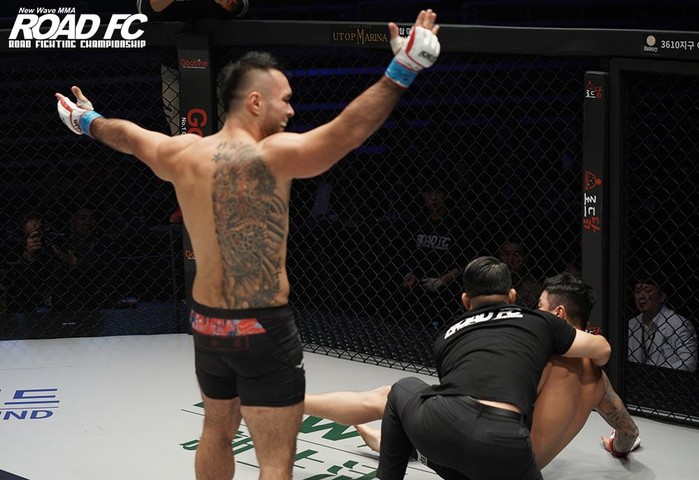 시게모토의 경기력도 인상적이었다. ROAD FC 역대 최단 시간 KO 기록 보유자 ‘5초의 사나이’ 최원준을 단 29초 만에 이겼다.