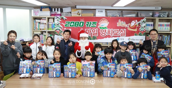 12월21일 오후 경기 시흥시 소재 실로암지역아동센터에서 열린 2080 스마일 키즈 양치교실에서는 산타가 깜짝 이벤트로 찾아가 지역아동센터 아동 30여명에게 크리스마스 선물로 치약, 칫솔세트를 전달해 기쁨을 더했다.