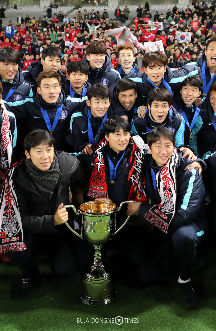 신태용 감독이 이끄는 한국대표팀은 16일 일본 도쿄의 아지노모토 스타디움에서 열린 일본과의 2017 동아시아연맹(EAFF) E-1 챔피언십 최종전(3차전)에서 4-1로 완승했다. 이 승리로 한국은 2015년 중국대회 우승에 이어 2연패를 달성했다.