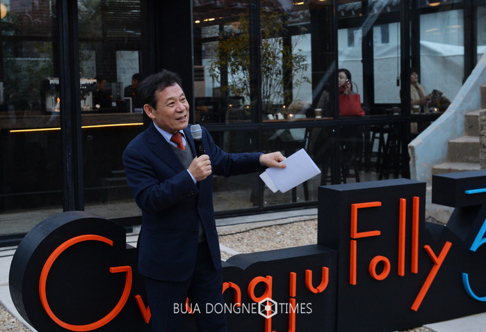 윤장현 광주광역시장이 10일 오후 동구 산수동에 들어선 광주폴리 3차 프로젝트 쿡(COOK) 폴리 개막식에 참석해 인사말을 했다.