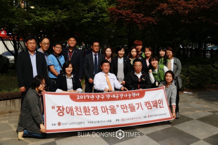 휠체어와 지팡이를 짚고 간이턱과 횡단보도, 계단 등 백운광장 인근을 지나가보며 현실에서 장애인들이 겪는 어려움을 직접 체험한 후 남구청 인근 장애인 편의시설 실태조사에도 함께 동참했다.