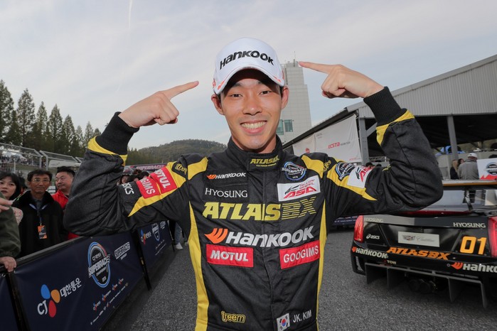 [사진설명] 김종겸이 지난 26일 용인 에버랜드 스피드웨이에서 열린 2019 CJ대한통운 슈퍼레이스 챔피언십 8라운드 ASA 6000 클래스에서 우승을 차지한 뒤 기뻐하고 있다.