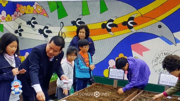| △남구의회 박용화 의원은 휴먼시아2단지 주민복지관 옥상 자연생태도시형 텃밭에서 백운1동 휴먼시아2단지 임차인대표헙의회, 관리사무소, (사)새벽요양보호사 협의회 주관으로 개최하는 봄맞이 씨앗심기 행사에 참여하였다 |