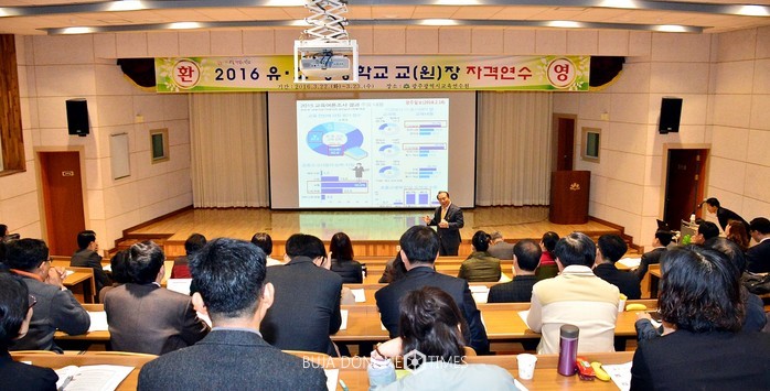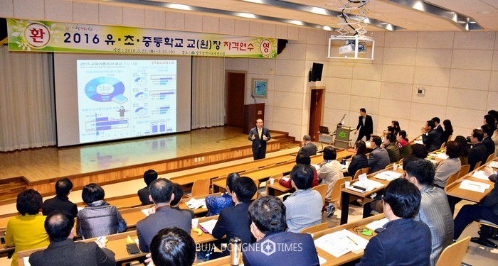 장휘국 광주시교육감은 22일(화) 오전 광주교육연수원을 방문 '2016 유·초·중등 교(원)장자격 연수'를 받고 있는 연수생들을 격려하고 '질문이 있는 교실'을 주제로 1시간 동안 특강을 했다.