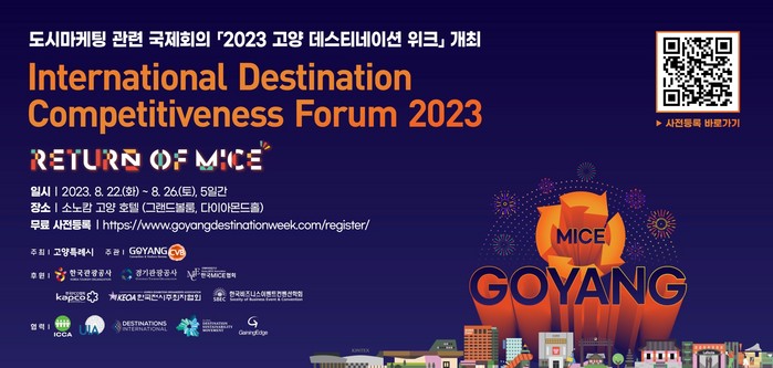 [부자동네타임즈 김인수기자] 고양컨벤션뷰로가 주관하는 ‘2023 고양 데스티네이션 위크(GDW)’가 8월 22일부터 8월 26일까지 소노캄 고양 호텔에서 개최된다.