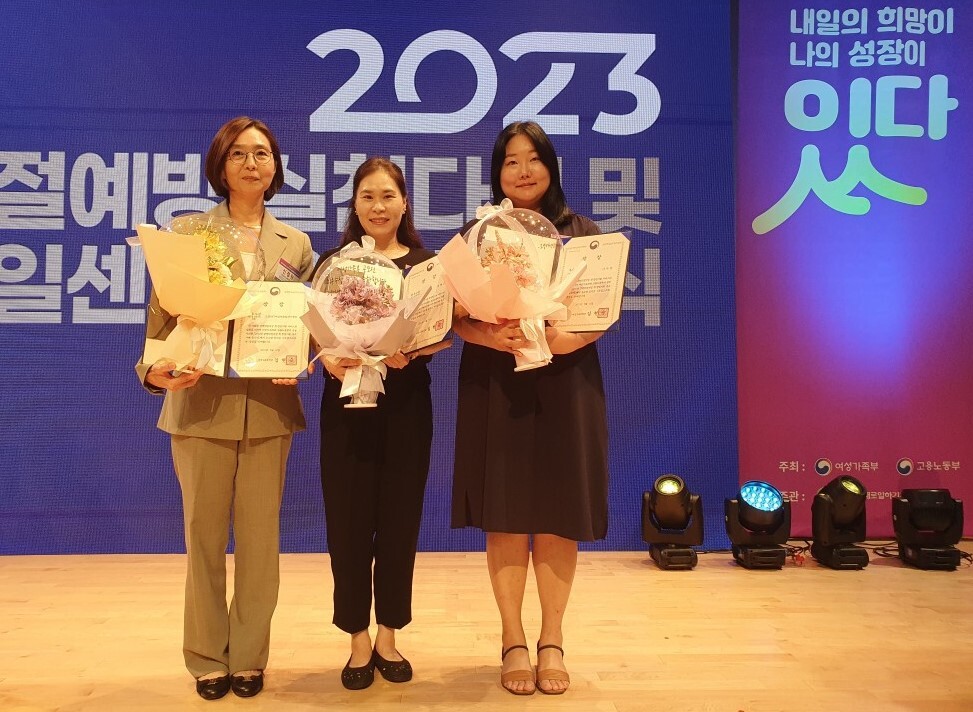 이날 센터의 취업 지원 과정을 수료하고 취업에 성공한 권혜은 수료생과 이수연 수료생이 센터와 함께 여성가족부 장관상을 공동 수상했다.
