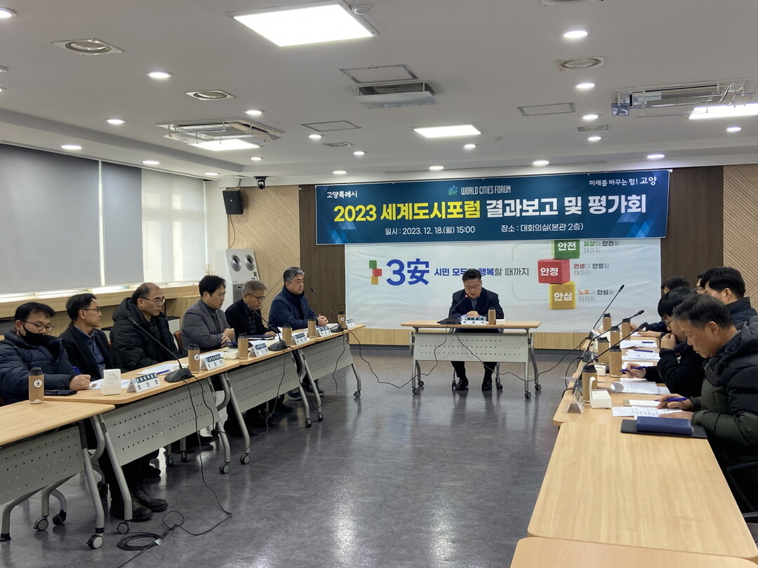 지난 18일 고양시청 대회의실에서 개최된 보고회에는 포럼 조직위원장인 박원석 제1부시장을 포함한 각 부서장, 세계도시포럼 조직위원회 위원 20명이 참석했다. 보고회는 △세계도시포럼 영상 시청 △세계도시포럼 결과보고 △평가 및 질의응답 △2024년 행사 추진계획 논의 순으로 진행되었다.