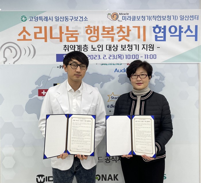 [부자동네타임즈 김인수기자] 고양특례시(시장 이동환) 일산동구보건소는 지난 23일 보청기 전문업체인 미라클보청기센터와 ‘소리나눔 행복찾기’업무협약을 체결했다.