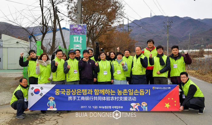 [부자동네타임즈 이현재 기자]NH농협은행(은행장 이경섭)은 1일 중국공상은행(ICBC) 서울지점 임직원과 함께 경기도 파주 산머루 마을을 방문해 농촌일손돕기를 실시했다고 3일 밝혔다.
