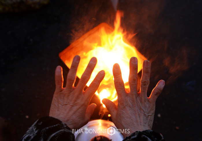서울의 아침 최저기온이 영하 10도까지 떨어지는 등 전국적으로 한파가 기승을 부리는 31일 오전 서울 중구 중림시장에서 상인들이 모닥불을 피우고 추위를 피하고 있다. 2017.01.31.