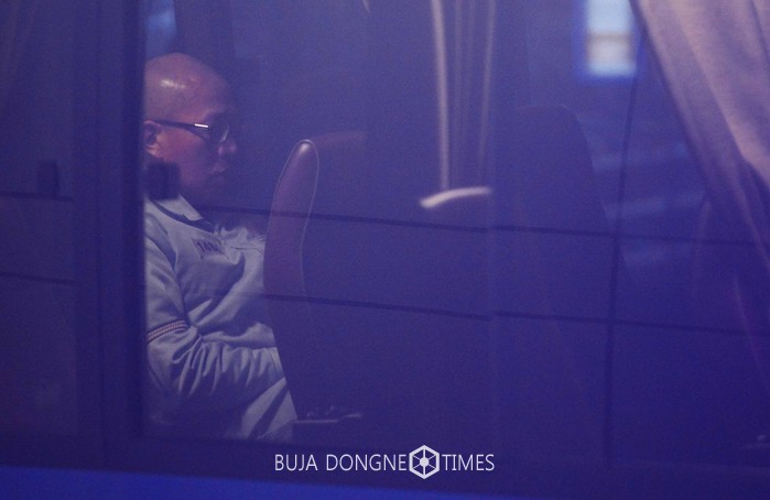 차은택 전 창조경제추진단장이 24일 서울 강남구 대치동 특검 사무실 앞에 대기중인 호송차에 탑승해 있다. 2017.01.25