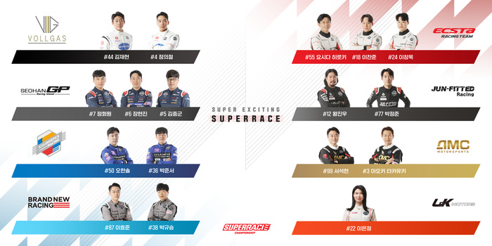 [사진 설명] 2023 CJ대한통운 슈퍼레이스 챔피언십 1, 2라운드에 나설 슈퍼 6000 클래스 드라이버 라인업.