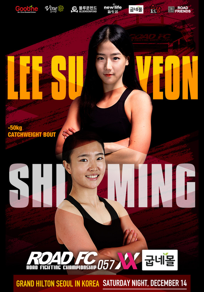 [부자동네타임즈 김인수기자] 이수연은 12월 14일 그랜드 힐튼 서울에서 개최되는 굽네몰 ROAD FC 057 XX에서 ‘중국 격투 여동생’ 스밍(25, JING WU MEN JU LE BU)과 대결한다.