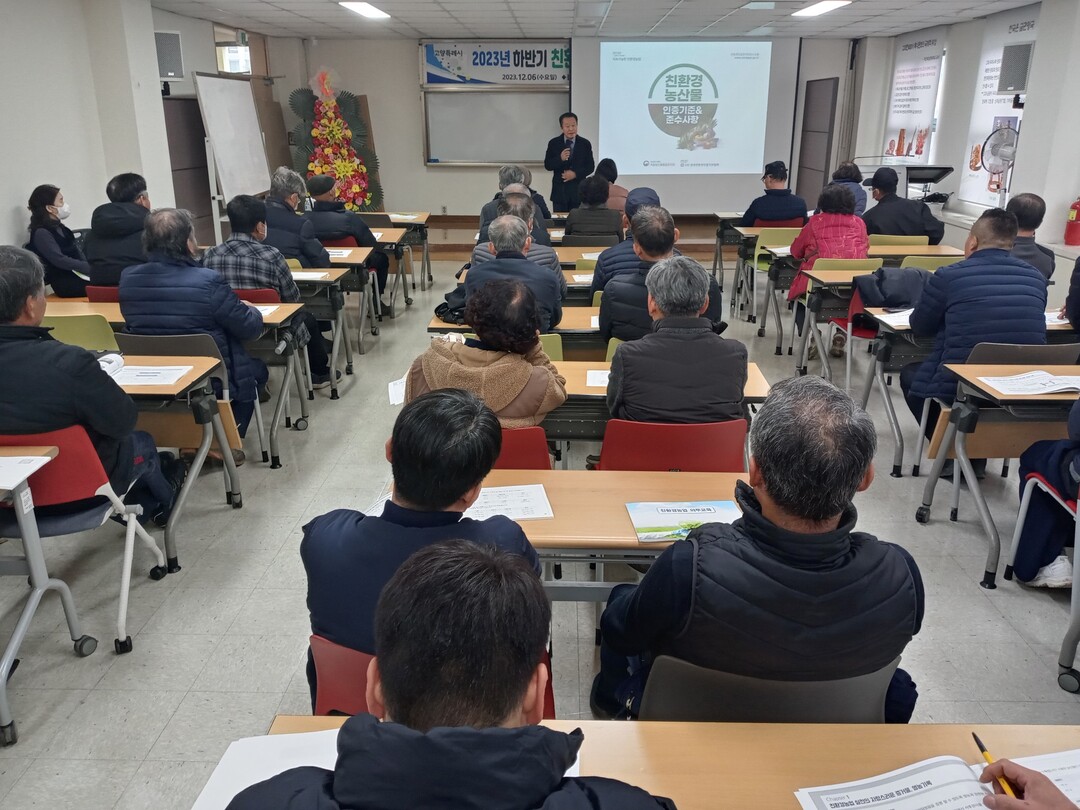 [부자동네타임즈 = 김인수 기자] 지난 6일 농업기술센터에서 친환경농업 인증 갱신 및 신규취득 농가 49명이 참가한 가운데 하반기 친환경농업 의무교육을 실시했다.