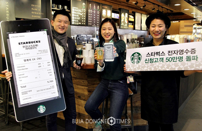 스타벅스커피 코리아는 전자영수증 서비스 런칭 약 2개월만에 신청고객 50만 명을 돌파했다고 16일 밝혔다. 2017.02.16. (사진=스타벅스커피 코리아 제공)