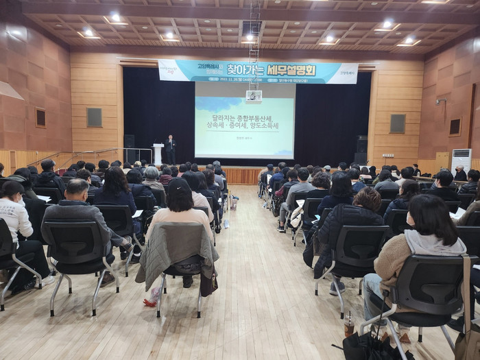 설명회는 종합부동산세 과세체계 및 2023년 달라지는 세법내용, 양도소득세, 상속·증여세 등 사례로 살펴보는 세금 절세방안, 조정지역 해제에 따른 취득세 세율변경 등 시민들의 관심이 높은 세금을 중점적으로 다뤘다.