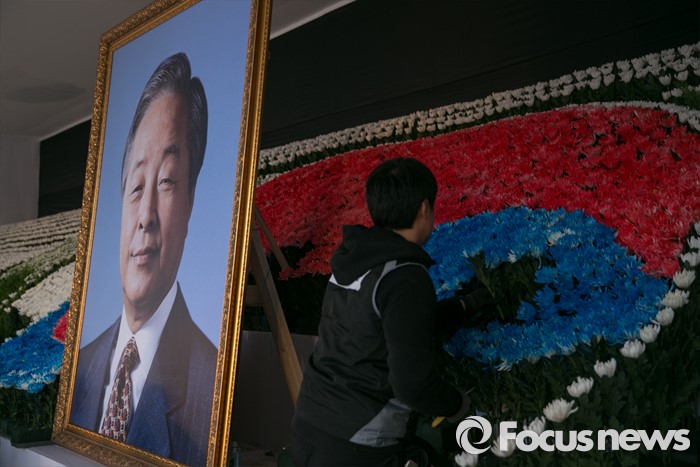 (서울=포커스뉴스) 26일 오전 서울 여의도 국회 본청 앞에서 관계자들이 故 김영삼 전 대통령 국가장 영결식을 준비하고 있다.