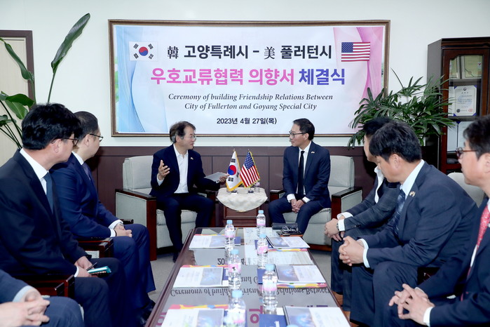 [부자동네타임즈 김인수기자] 고양특례시(시장 이동환)는 미국 풀러턴시와 경제, 교육, 문화 등 다방면의 교류 협력 추진을 위해 지난 27일 고양꽃전시관에서 우호교류협력 의향서 체결식을 진행했다.