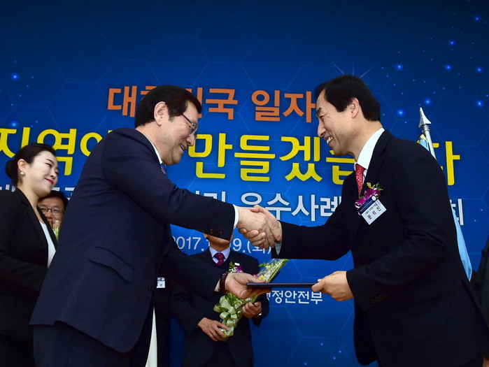 19일 오후 정부서울청사 국제회의실에서 열린 공공부문 일자리 우수 사례 시상식에서 문석진 서대문구청장은 이용섭 일자리위원회 부위원장으로부터 대통령상을 수상했다.