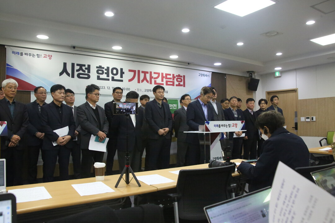 그 일례로 2022년부터 현재까지 경제자유구역, 도시 재정비, 킨텍스 복합개발, 시민복지재단 등 고양시의 발전을 위한 주요 예산들이 시장의 관심사업이라는 이유만으로 수차례 부결되거나 때를 놀쳐 통과됐다고 밝혔다.