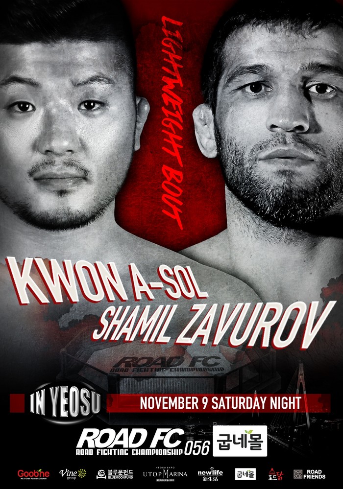 한편 ROAD FC는 11월 9일 여수 진남체육관에서 굽네몰 ROAD FC 056을 개최, 권아솔이 샤밀 자프로브와 대결한다. ‘밴텀급 챔피언’ 김민우는 장익환을 상대로 1차 방어에 나선다. 12월 14일에는 그랜드 힐튼 서울에서 굽네몰 ROAD FC 057이 열려 여성부리그인 ROAD FC XX, 연말 시상식도 진행된다.