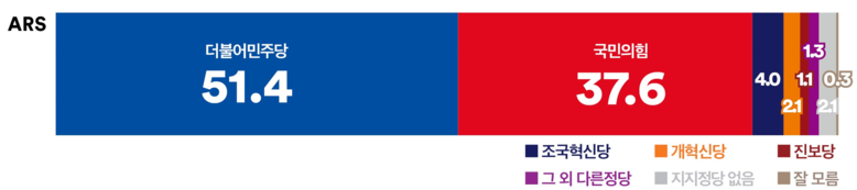 이념 성향별로는, 진보층과 중도층에서 ‘더불어민주당’이 우위를 보였고, 보수층에서는 ‘국민의힘’이 강세를 나타냈다. 특히 중도층에서는 ‘더불어민주당’이 57.3%의 지지를 얻어 ‘국민의힘’(28.9%)보다 28.4%p 높았으며, ‘조국혁신당’은 5.1%의 지지를 얻었다.