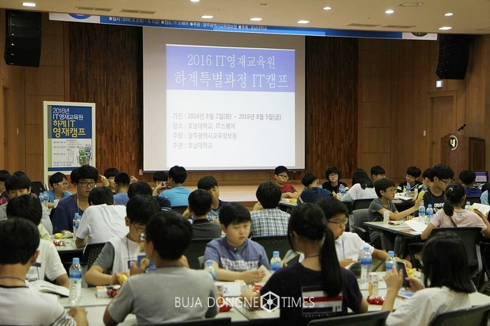 광주광역시교육정보원부설IT영재교육원(원장 박봉순)이 8월2일 호남대학교 IT스퀘어에서 IT영재교육원 학생및 학부모, 강사, 관리교사 등 150여 명이 참가한 가운데 하계IT캠프 개강식을 갖고 8월5일까지 3박4일간 IT영재캠프를 운영한다.
