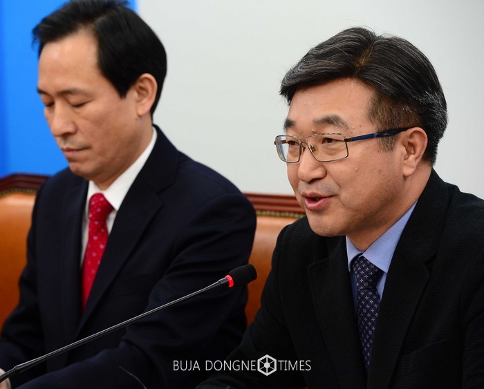 더불어민주당 윤호중 정책위의장이 3일 오전 서울 여의도 국회 원내대표실에서 열린 원내대책회의에서 모두발언을 하고 있다. 2017.01.03.