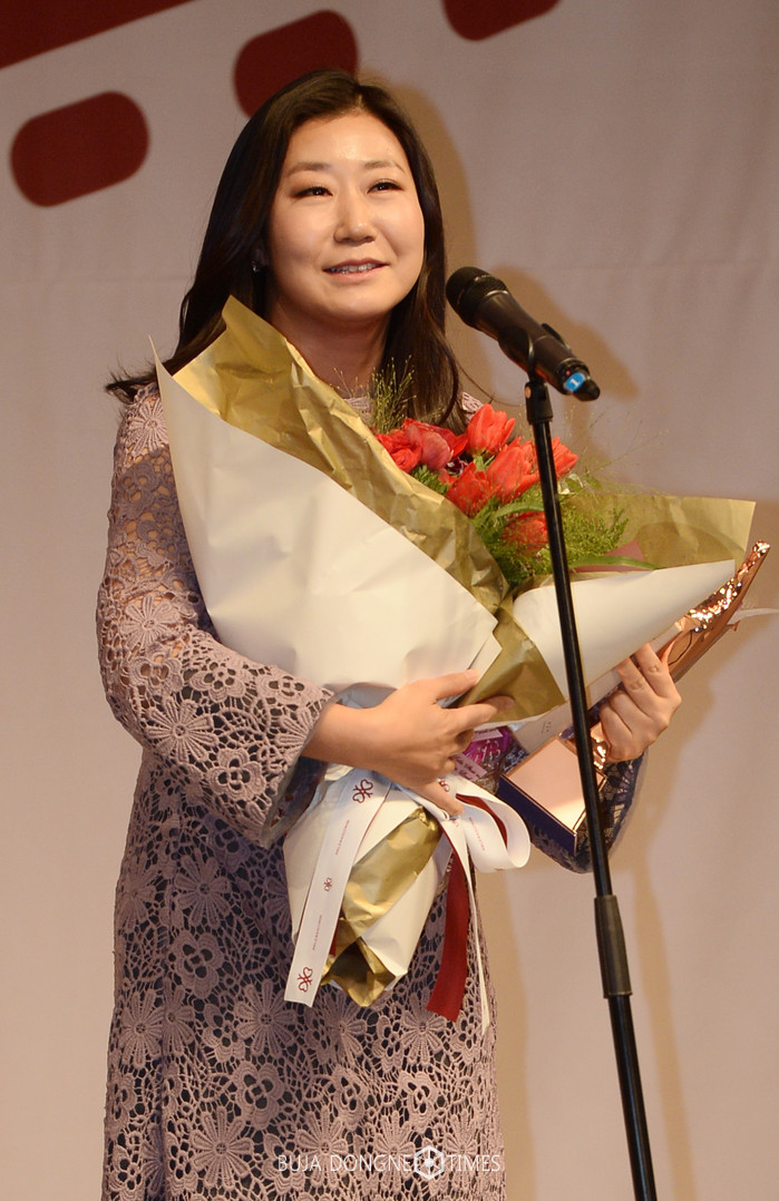18일 오후 서울 중구 프레스센터 국제회의장에서 한국영화기자협회 주최로 열린 제8회 올해의 영화상에서 여우조연상을 수상한 배우 라미란이 소감을 말하고 있다. 2017.01.18.