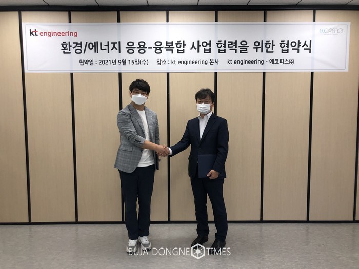 양사는 업무 협약을 체결하고 ▲환경·수질개선장치(설비) 및 응용·융복합 시장 ▲KT엔지니어링의 콘셉트 또는 에코피스 설계·제작 상품 적용 사업에 대한 상호 협력을 진행한다. KT엔지니어링은 시장 발굴 및 맞춤형 고객 제안 등을 에코피스는 환경·수질개선장치(설비) 설계·제조·납품 등을 담당한다.