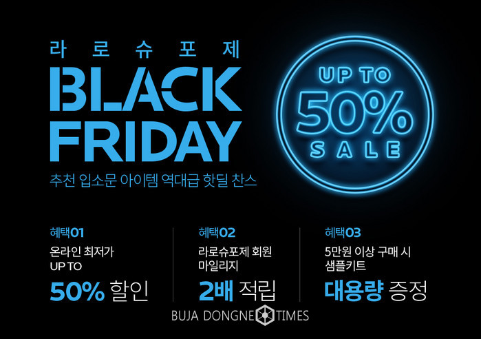 [부자동네타임즈 김현정 기자]글로벌 더모 코스메틱 브랜드 라로슈포제가 공식 사이트 내 페이코 간편결제 서비스 런칭을 맞아 최대 50% 제품 할인 및 마일리지 2배 적립, 5만원 이상 구매 시 대용량 샘플 키트를 증정하는 ‘블랙 프라이데이 이벤트’를 진행한다.
