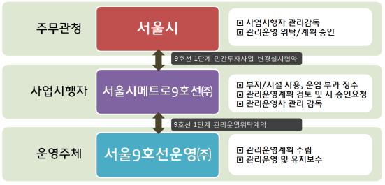 9호선 1단계 구간은 민간투자법에 의해 시행된 구간으로 주무관청인 서울시는 사업시행자인 서울시메트로9호선(주)을 관리 감독할 수 있지만, 운영사(서울9호선운영(주))의 노사협상에 직접 관여할 수 없다.