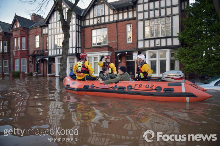 | △ (칼라일/영국=게티/포커스뉴스) 6일(현지시간) 영국 북부 지역에 최악의 폭우가 발생해 1만명이 대피하고 6만 가구가 정전됐다. ⓒ게티이미지/멀티비츠 photo@focus.kr |