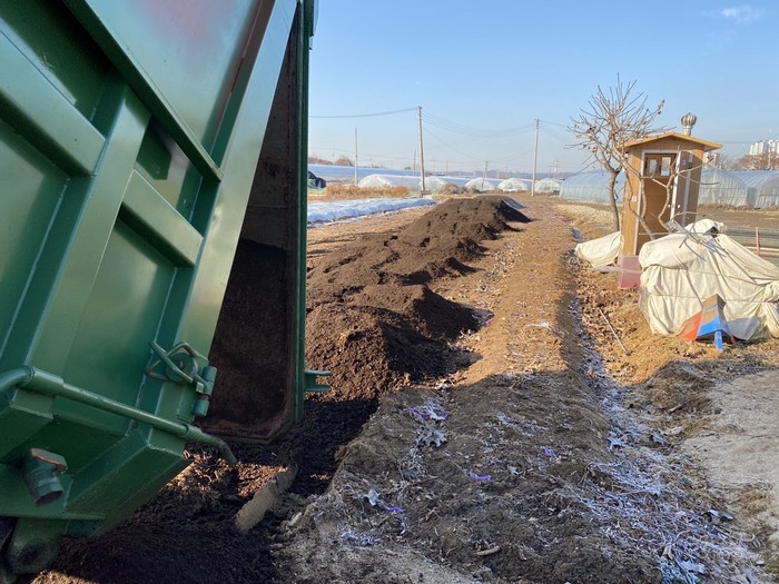 [사진설명] 농지에 운반되고 있는 친환경 퇴비.