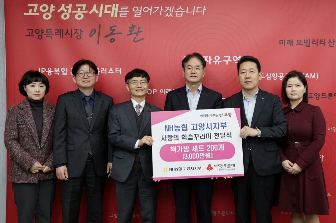 [부자동네타임즈 = 김인수 기자] 고양특례시가 지난 26일 고양시청 열린시장실에서 엔에이치(NH)농협 고양시지부 후원으로 사랑의 학습꾸러미 전달식을 진행했다.