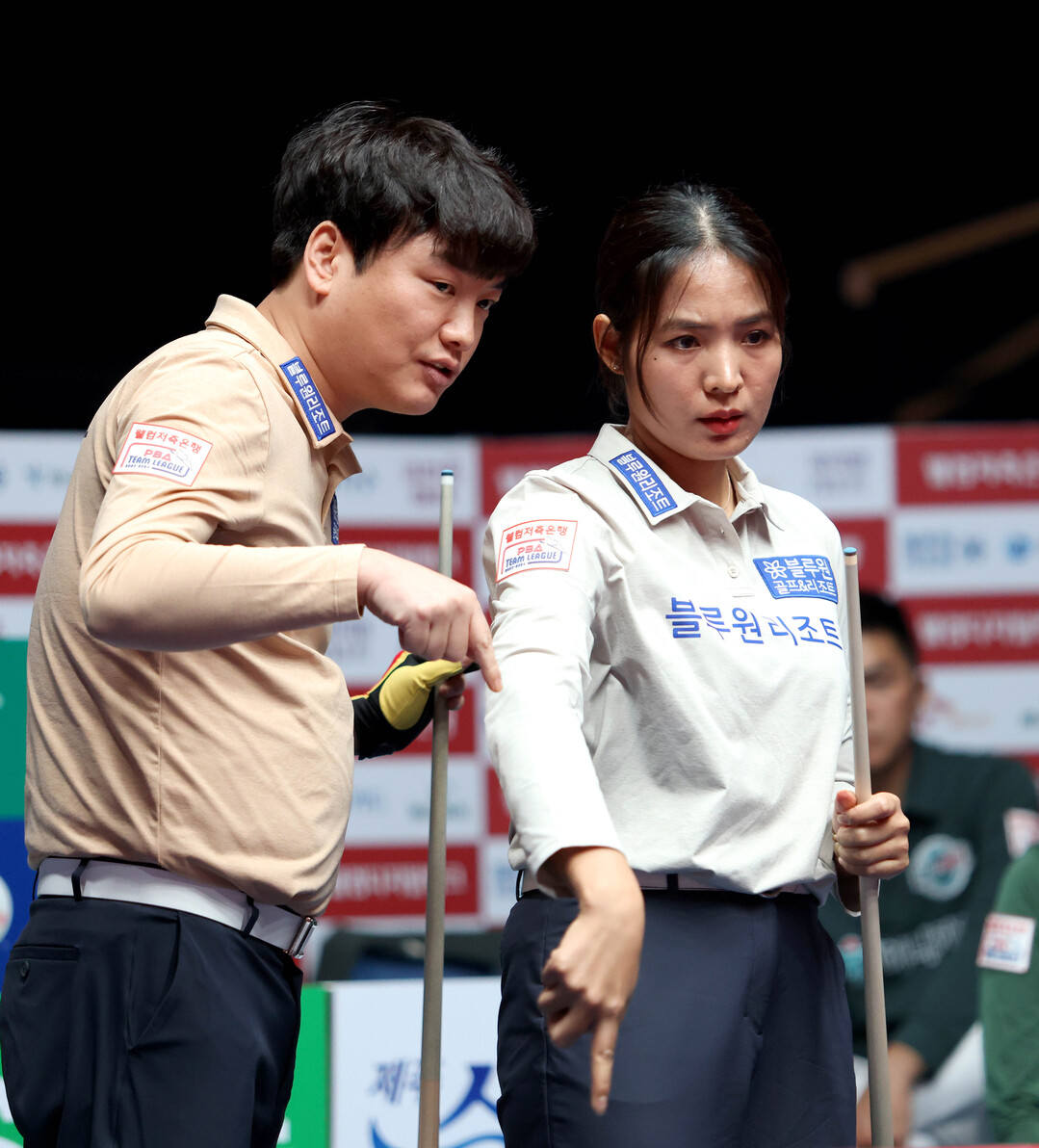 이날 블루원은 경기 4세트까지 2:2로 팽팽하게 맞섰다. 첫 세트 다비드 사파타(스페인)-엄상필이 ‘베트남듀오’ 응우옌프엉린-응우옌득안찌엔을 상대로 11:9(5이닝) 기분 좋은 승리를 따냈으나 2,3세트서 서한솔-김민영과 잔 차파크(튀르키예)가 나란히 용현지-이미래, 륏피 체네트(튀르키예)에 패하며 리드를 빼앗겼다.