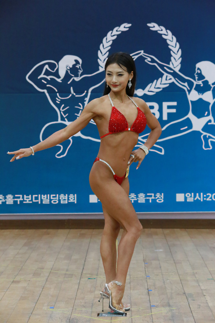 [사진설명] 제2회 인천광역시 미추홀구청장배 보디빌딩&피트니스 선발대회 무대에서 자신에 매력을 표출하고 있는 이수정 선수.