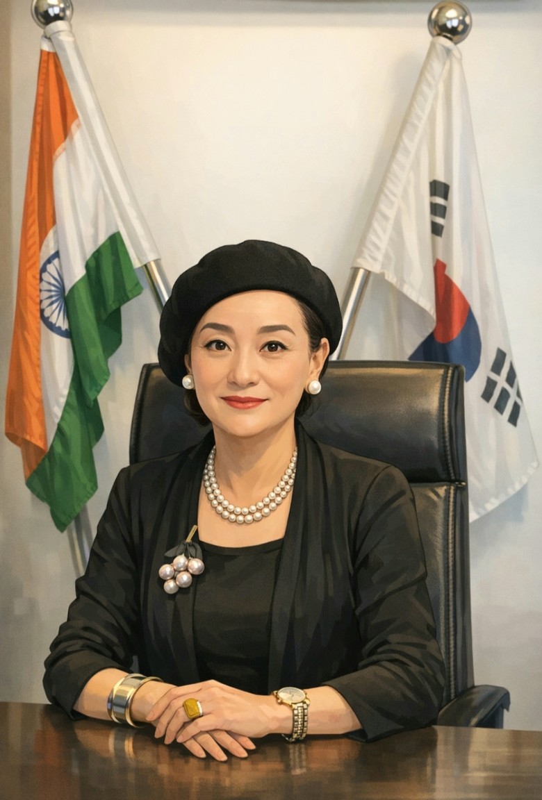 ▲사진설명 : 글로벌외교관포럼과 한-인도비즈니스문화진흥원(IKBCC) 이사장인 제나 정(Dr. Zena Chung)의 오리지널 사진을 바탕으로, 필자가 칼럼용 프로필에 맞는 애니메이션 스타일 제작을 요청해 생성된 이미지다. 실제 인물의 표정과 분위기를 유지하면서도 현대적 감각을 더한 것이 특징이다.