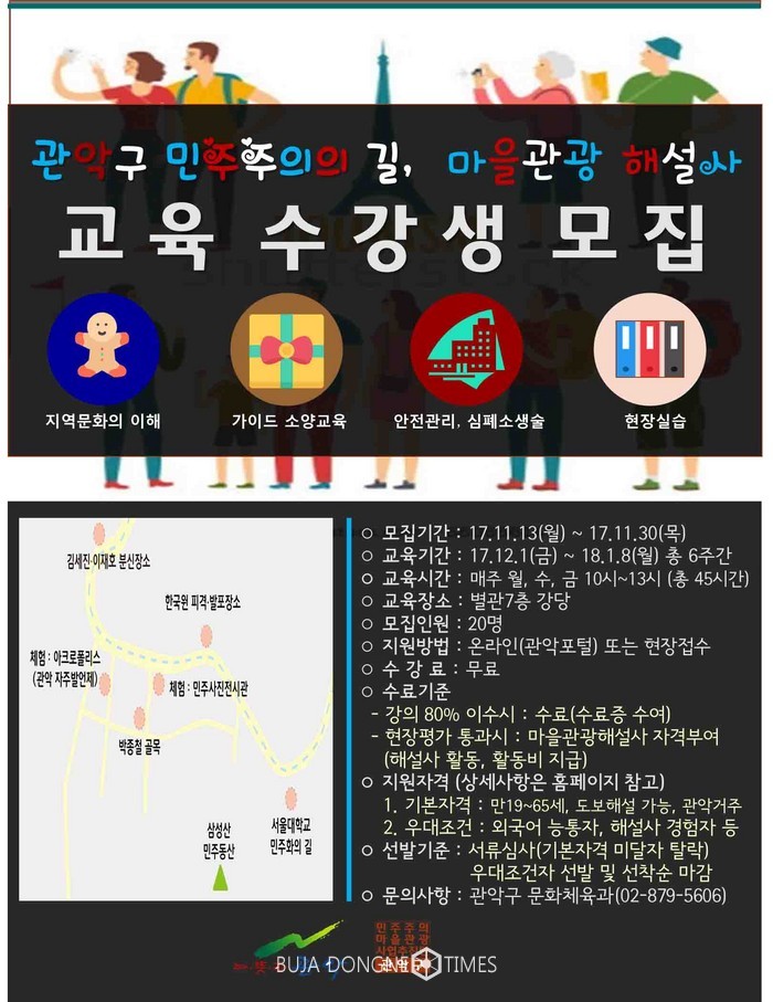 [부자동네타임즈 이병도 기자]관악구가 마을관광해설사 양성교육을 시작한다.