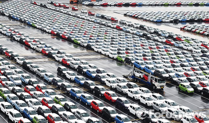 | △ 북미 수출을 위해 마산항 수출부두에 선적 대기중인 쉐보레 스파크 <사진제공=한국GM> |
