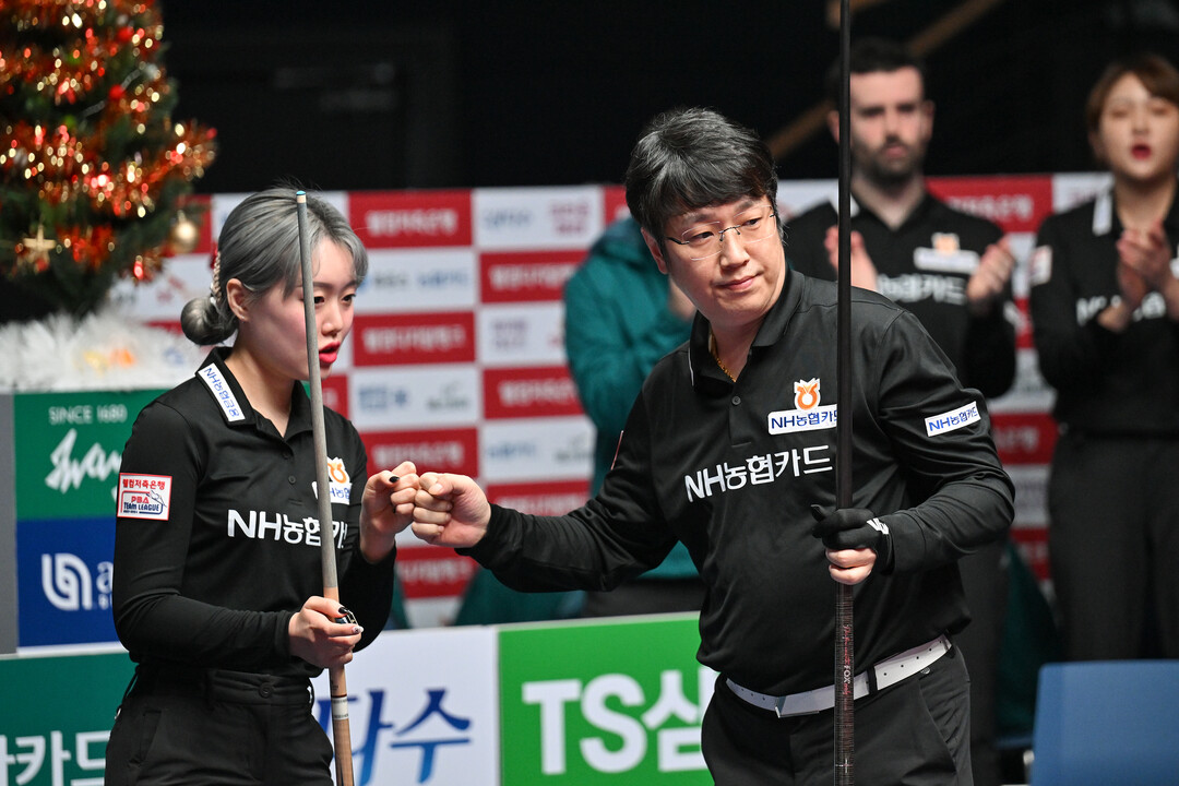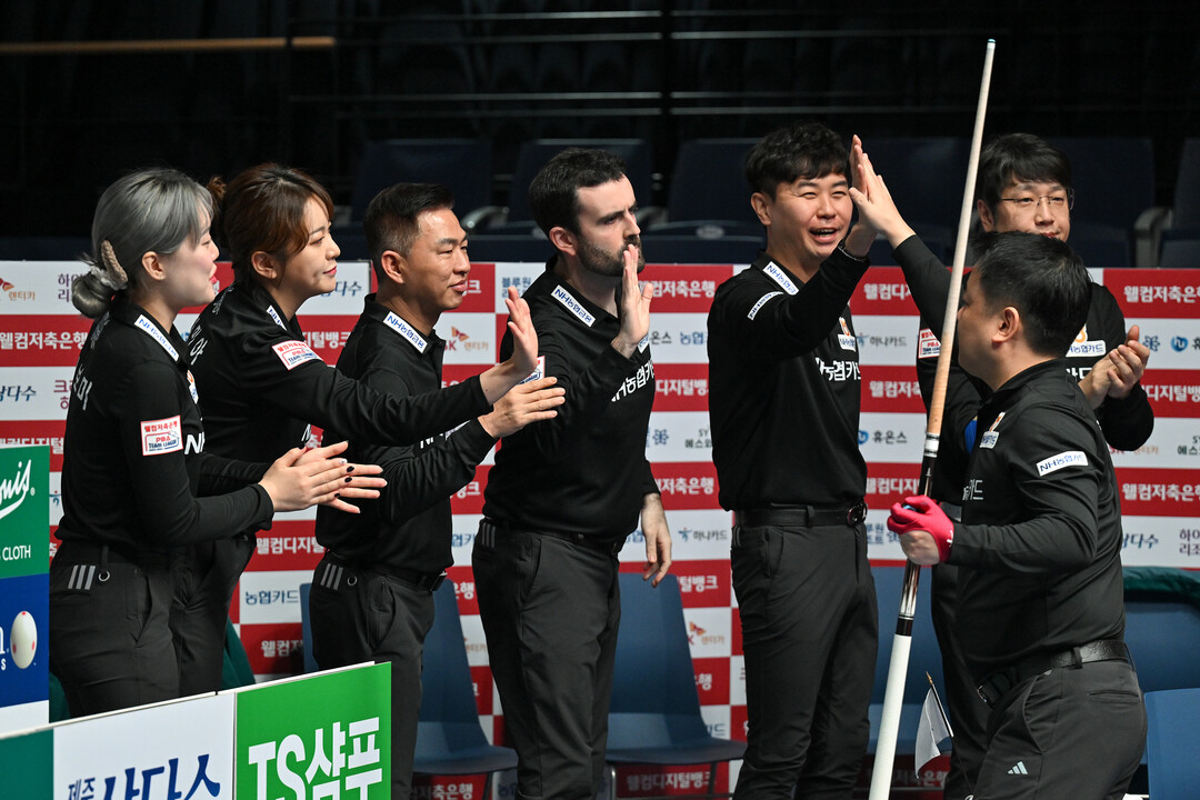 지난 11일 경기도 고양시 ‘고양 킨텍스 PBA 스타디움’에서 열린 ‘웰컴저축은행 PBA 팀리그 2023-2024’ 4라운드 7일차 경기서 NH농협카드는 ‘팀 리더’ 조재호의 2승 활약에 힘입어 휴온스를 세트스코어 4:1로 꺾고 단독 선두(승점16)를 지켰다. 같은 날 우승 경쟁에 있던 크라운해태는 에스와이에 1:4로 패배하면서 승점13으로 제자리, NH농협카드와 격차가 벌어졌다.