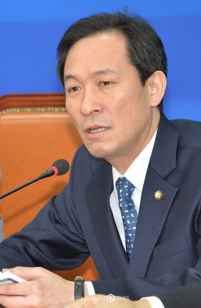 [부자동네타임즈 심귀영 기자]우상호 더불어민주당 원내대표는 9일 한미 양국이 사드(THAAD·고고도미사일방어체계) 배치에 착수한 것과 관련, "한국 땅에 미군기지를 (새로) 만들면서 국회 비준을 받지 않는 것은 절대 있을 수 없다"고 강조했다.
