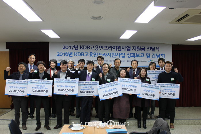[부자동네타임즈 이현재 기자]KDB나눔재단(이사장 이동걸 산업은행 회장)과 사회적기업활성화지원센터(이사장 김완배), 한국사회적기업진흥원(원장 오광성)은 ‘KDB 사회적기업 지원사업’ 지원 대상으로 10개 사회적기업을 최종 선정하고, 17일(금) 한국YWCA연합회 강당에서 협약식을 열고 2억원의 지원금을 전달하였다고 밝혔다.