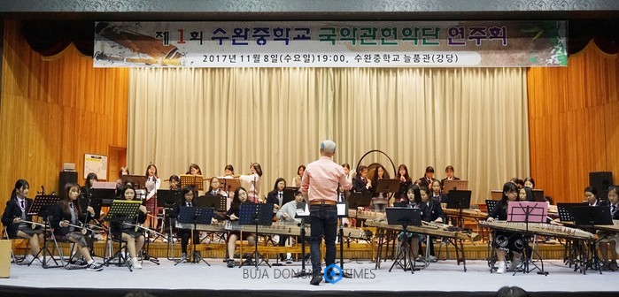 | △광주시 수완중학교가 수완중 늘품관에서 '제1회 수완중학교 국악관현악단 연주회'를 개최했다 |