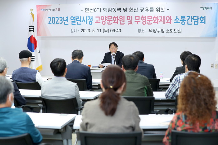 [부자동네타임즈 김인수기자] 지난 11일 고양문화원 및 무형문화재 보유자들과의 소통간담회를 실시했다. 이날 고양문화원 관계자 및 무형문화재 보유자 40여 명이 참석했다.