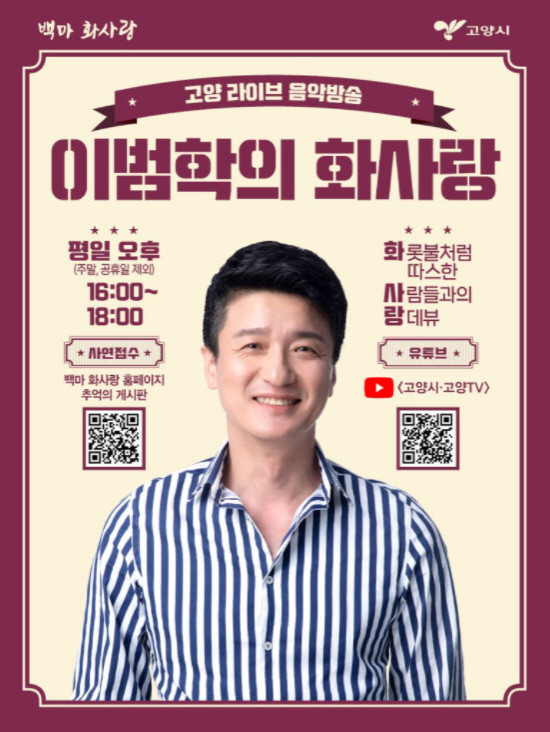 한편, 10월 1일부터 10일까지 고양시 유튜브 채널에서 ‘이범학의 화사랑’ 관련 댓글 이벤트가 진행 중이다. 이벤트 영상을 시청한 후 댓글에 정답을 남기면 추첨을 통해 선물을 증정한다.