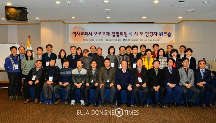 광주교육청(장휘국교육감)이 23~24일 홀리데이인광주호텔에서 역사교과서 보조교재 개발을 위한 4개 시·도 집필위원과 업무당당자 워크숍을 개최했다. 참석자들은 역사교과서 보조교재 개발과 관련한 협의와 열띤 토론을 진행했다.