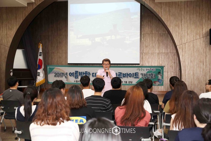 유종필 구청장은 “방학기간 관공서 아르바이트를 통해 학비 마련은 물론, 구정업무도 간접체험해 볼 수 있는 소중한 기회를 가져보길 바란다”고 말했다.
