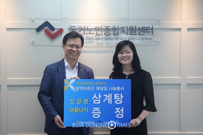 한편, NH농협은행 최명호 고객행복센터장을 비롯한 직원들은 중복을 맞아 지난 17일 서울 영등포구 여의도동에 위치한 독거노인종합지원센터(센터장 김현미)를 방문하여 어르신들을 위한 삼계탕 300인분을 증정했다.